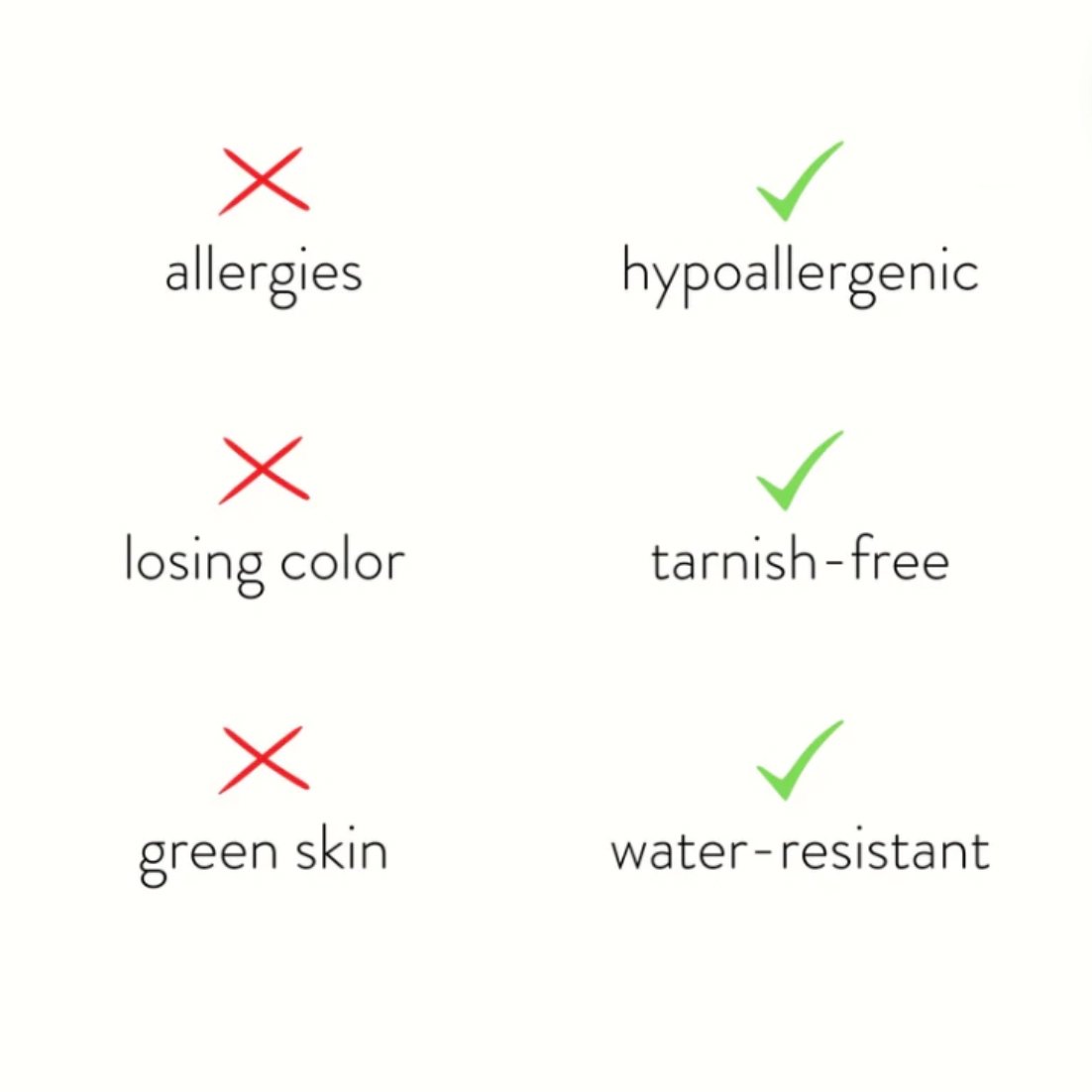 防水ステンレススチール製で変色せず、輝きと耐久性を長く保ちます。サイズ1.5cm×0.4cm。低アレルギー性で鉛・ニッケルフリーのため、快適で安心してお使いいただけます。